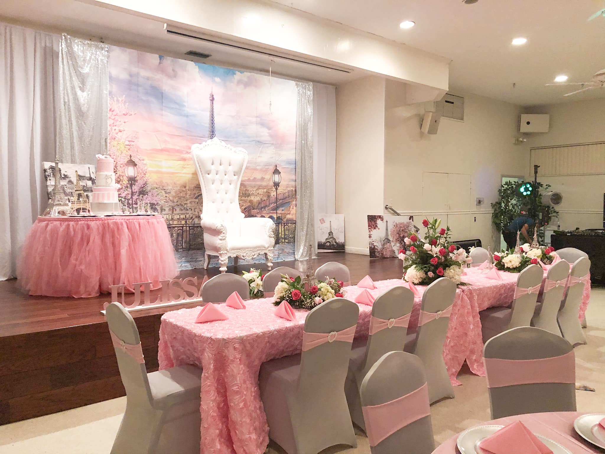 NEW POLICY: If a decorator is being utilized, they must be on our list of approved vendors, which requires them to meet with Deb to receive a certification. If one of our approved vendors are not decorating, there may also be different fees assessed if outside furniture or chivari chairs are utilized. There are absolutely no floor wraps or decals permitted on our floor…Period!
